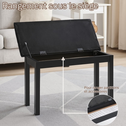 【RANGEMENT PRATIQUE】: Ce banc de piano dispose d'un grand espace de rangement qui vous permet de ranger facilement votre musique et vos manuels, pour un environnement ordonné et pratique. Le couvercle du siège s’ouvre et se ferme en douceur, facilitant l’accès en toute sécurité
