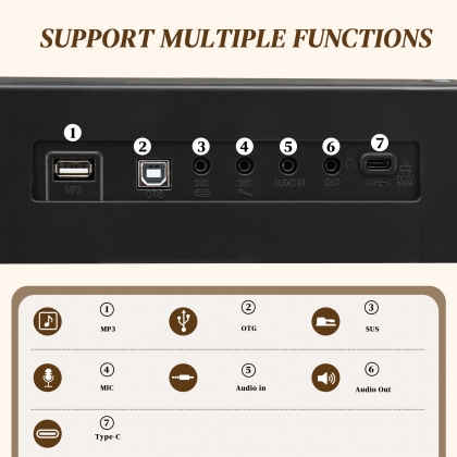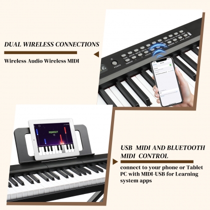 Double Bluetooth : Bluetooth audio et MIDI Bluetooth, connexion à un ordinateur ou une tablette via câble USB pour interaction multimédia