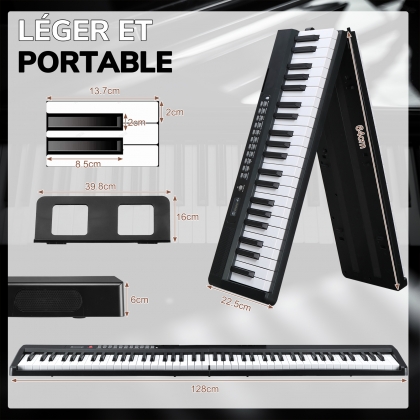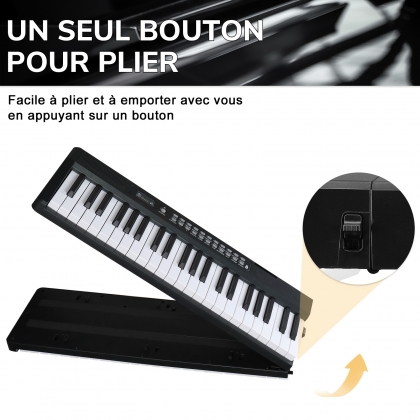 【Portable et Pliable】: Grâce à son boîtier ultra-fin et à sa conception pliable, notre piano à clavier se plie à 180°. Livré avec un sac de transport rembourré de 5 mm d'épaisseur, il protège et range votre piano pour un transport facile et rapide