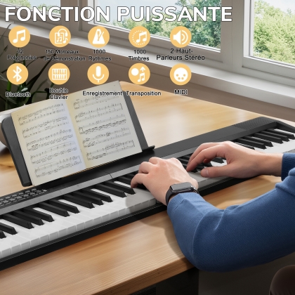 【Multiples Fonctionnalités】: Ce piano à clavier pliable propose 1 000 sonorités et rythmes internationaux standard et 50 morceaux de démonstration, vous permettant de personnaliser la mélodie de votre choix. Les modes d'enregistrement, de lecture et d'apprentissage facilitent l'apprentissage des débutants