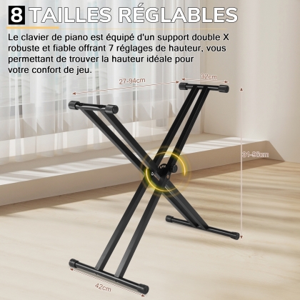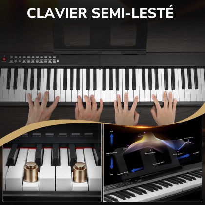 【Semi-Lesté et Deux Haut-Parleurs Stéréo】: Simulant le mécanisme de percussions d'un piano triangulaire, ce piano à clavier semi-lesté offre un toucher plus réaliste et un rebond plus puissant. Il intègre deux haut-parleurs stéréo pour des sons plus amples et délicats, et des harmoniques plus riches