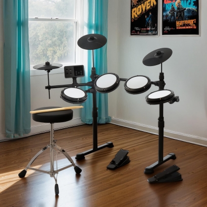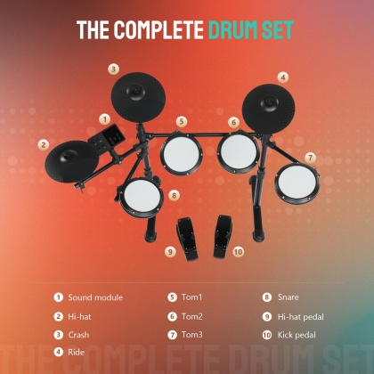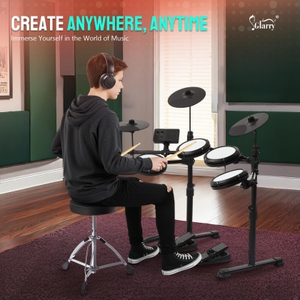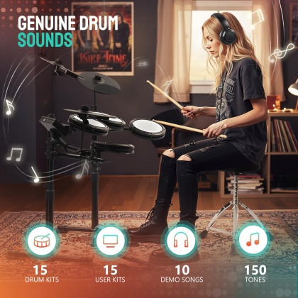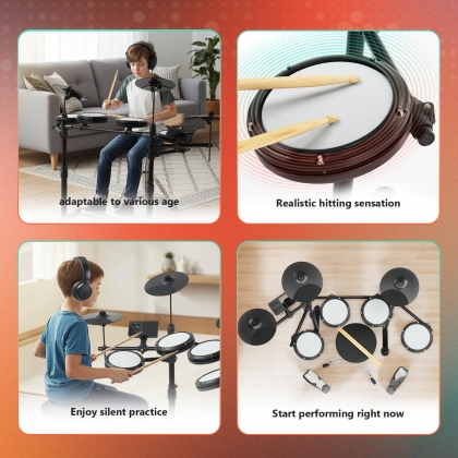 【Véritable sensation de maille】 : Équipée de toms et caisse claire en maille de 6,5 pouces et de cymbales en maille de 9,5 pouces, cette batterie électronique reproduit fidèlement les sensations d’une batterie acoustique. Utilisez le casque inclus pour une pratique silencieuse, vous pouvez jouer pendant des heures sans déranger votre famille ou vos voisins.