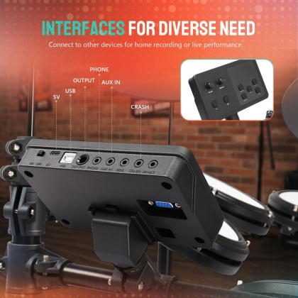 【Sons riches et démos】 : Cette batterie électronique dispose de 15 kits de batterie intégrés, 15 kits personnalisables, 150 sons et 10 morceaux de démonstration. Que vous aimiez le pop, le rock ou d’autres styles, vous trouverez le son adapté à chaque session d’entraînement ou de jeu.